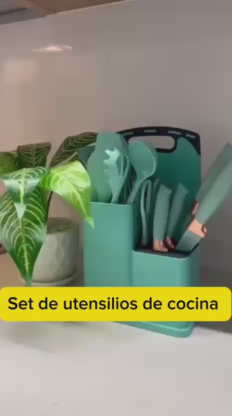 Con nuestro Set de Utensilios de Cocina 19 en 1 de Silicona tendrás todo lo que necesitas en un solo kit para preparar desde desayunos rápidos hasta cenas gourmet.