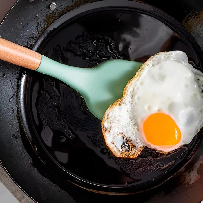 Cada pieza combina silicona de calidad alimentaria resistente al calor (hasta 230 °C) con mangos de bambú robustos y elegantes, para que disfrutes de seguridad, durabilidad y estilo mientras cocinas. Y como son aptos para lavavajillas y no retienen manchas ni olores, ¡limpiar será tan fácil como cocinar!